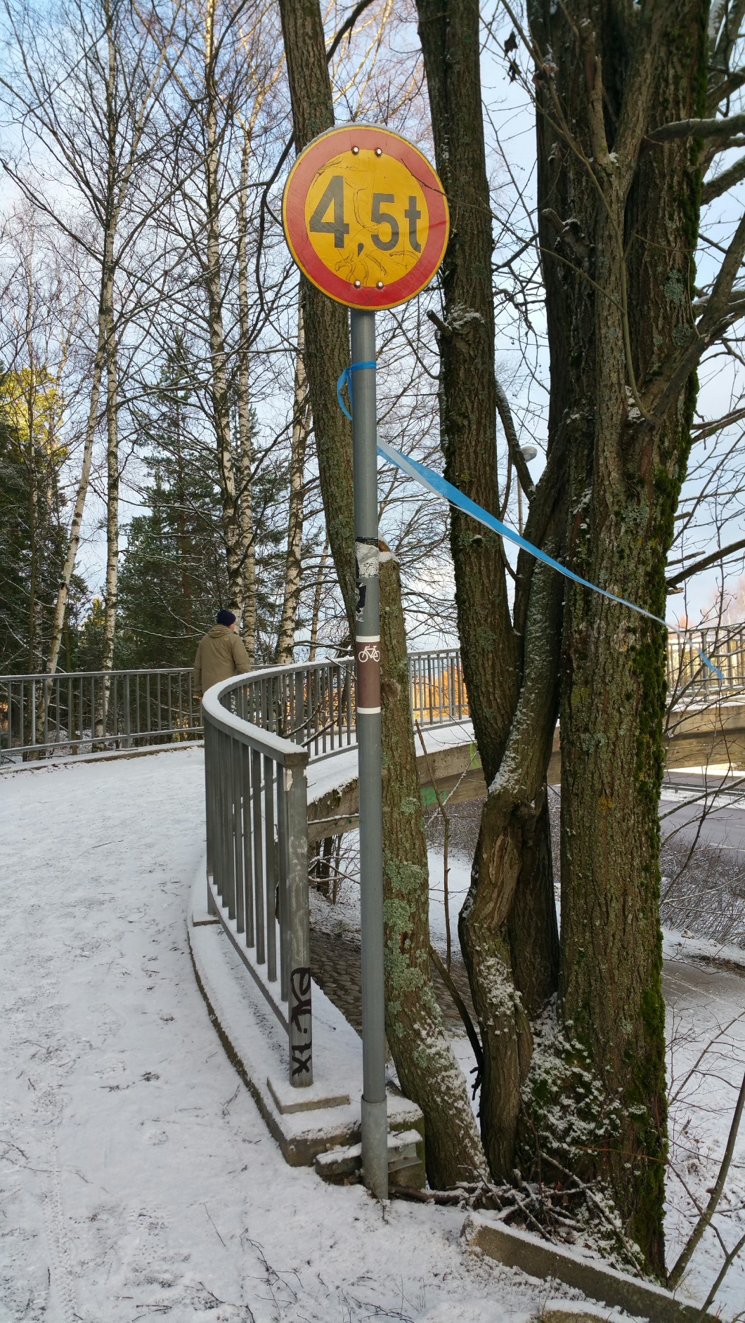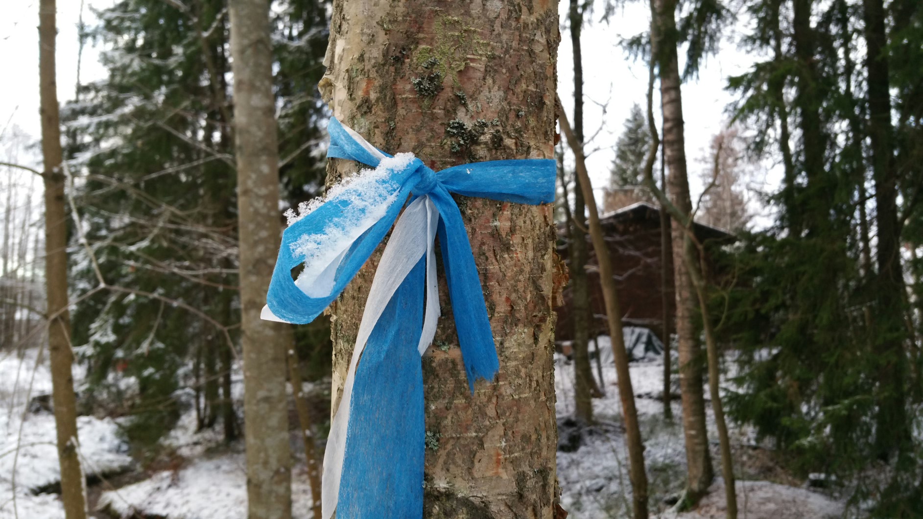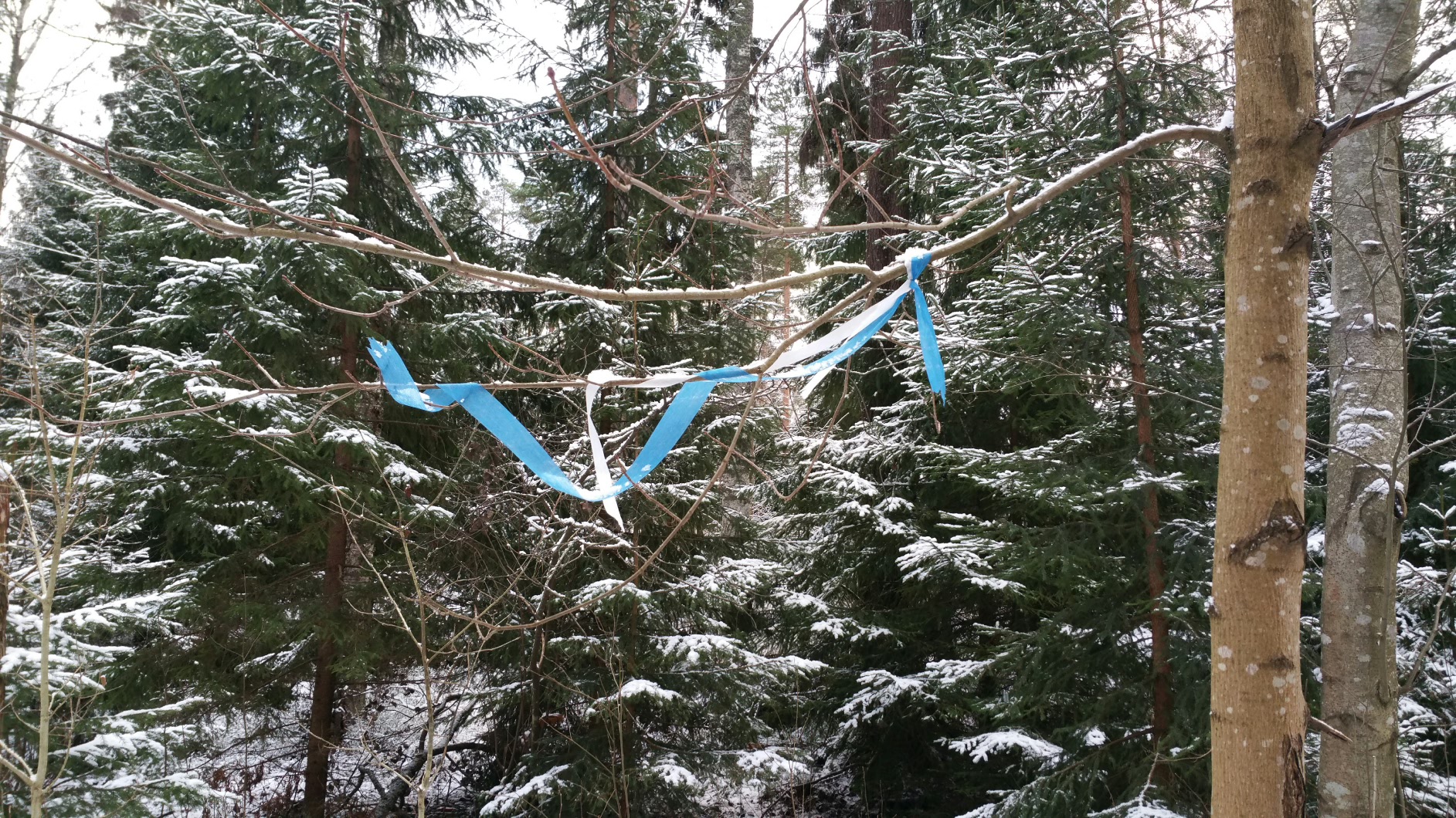Jos nauhat olivat hävinneet (kuka ryökäle tarvitsee lettinauhoja niin kipästi), käyhän reitin merkitseminen näinkin.